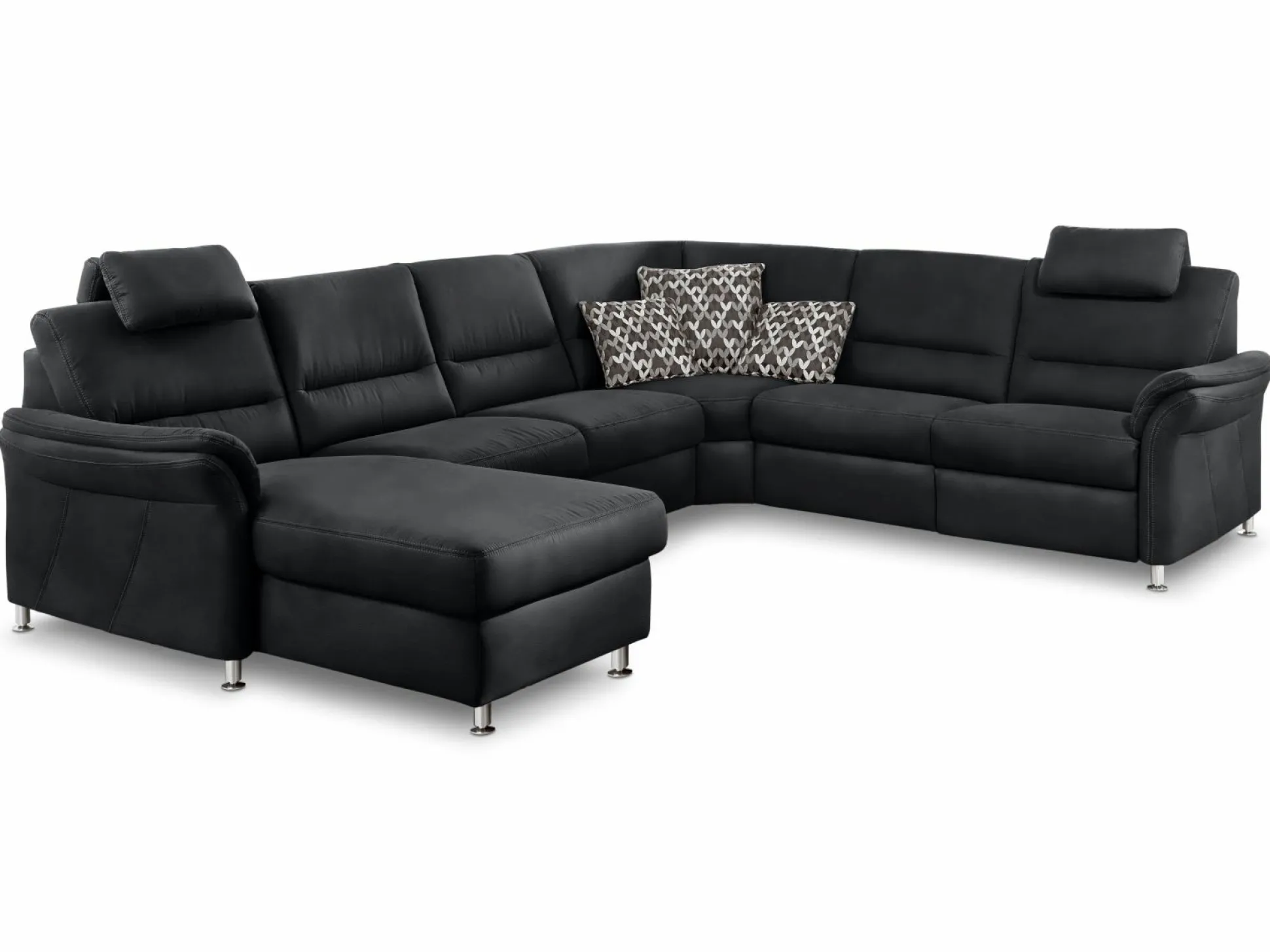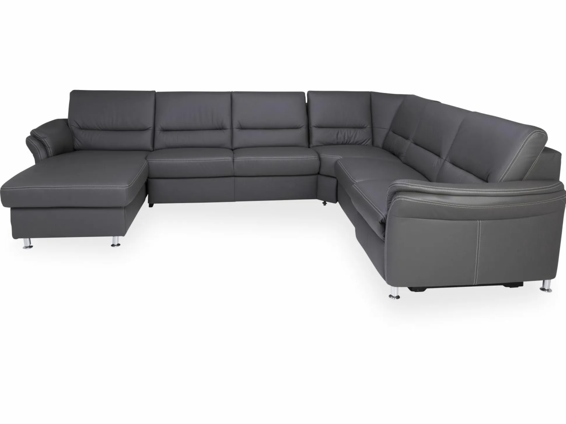 Genießen Sie schöne Stunden zusammen mit Ihren Liebsten auf der Polsterecke Systempolster Dakota aus dem Hause Massimo. Die moderne und gemütliche Optik wird Ihren Wohnbereich in eine echte Wohlfühloase verwandeln. Das Sofa besteht aus einer 2,5-Sitzer links, einer Rundecke und einem 2,5-Sitzer mit Armteil rechts. Die Polsterecke ist mit einem schicke Lederbezug bezogen und in verschiedenen Ausführungen erhältlich, sodass sich die Couch in nahezu jedes Wohnkonzept integrieren lässt. Des Weiteren ist das Sofa mit einer Kontrastnaht in beige versehen und rundet das Design perfekt ab. Auf Wunsch sind Funktionen und ein integriertes Bett erhältlich.
