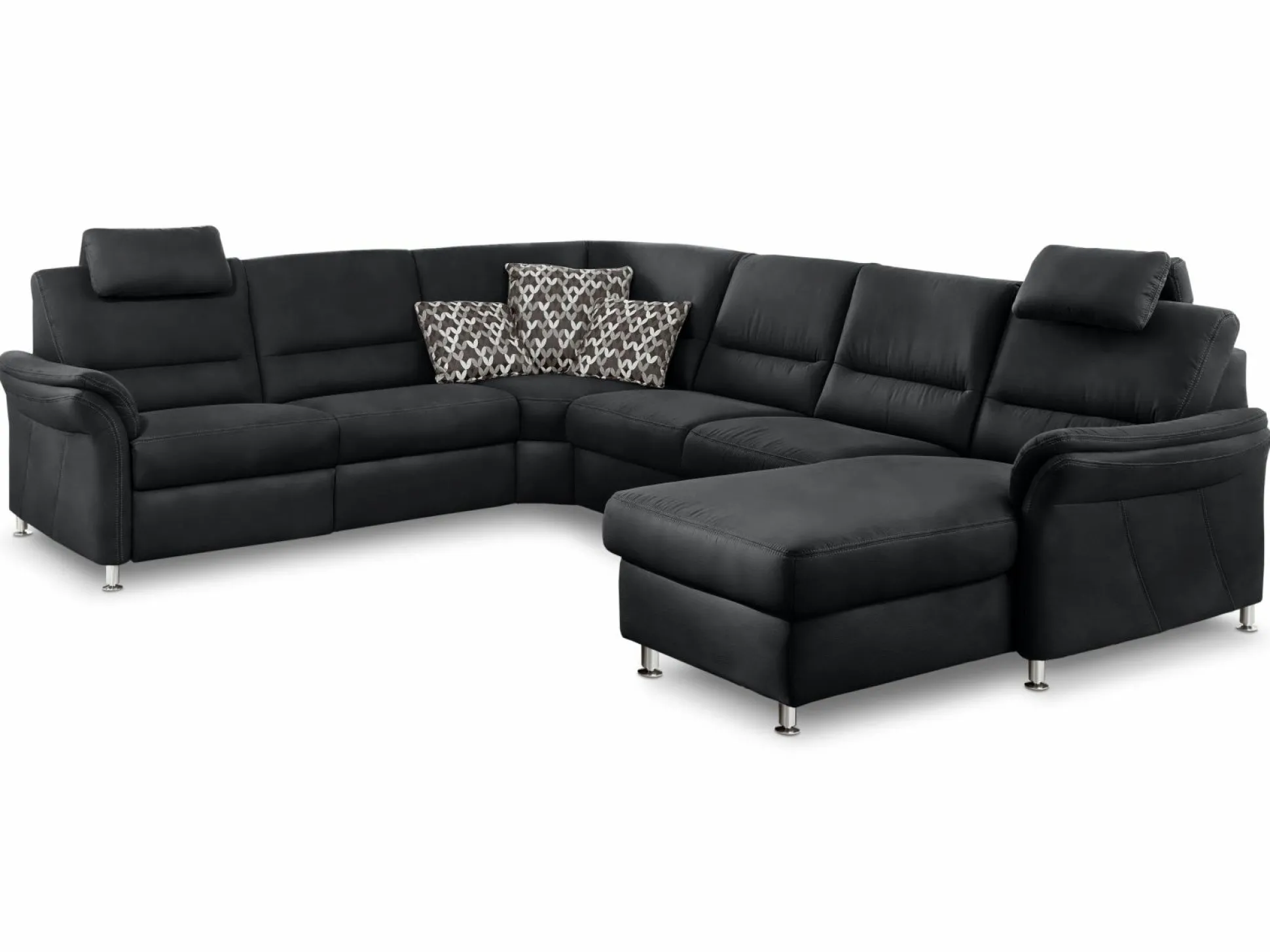 Genießen Sie schöne Stunden zusammen mit Ihren Liebsten auf der Polsterecke Systempolster Dakota aus dem Hause Massimo. Die moderne und gemütliche Optik wird Ihren Wohnbereich in eine echte Wohlfühloase verwandeln. Das Sofa besteht aus einer 2,5-Sitzer rechts, einer Rundecke und einem 2,5-Sitzer mit Armteil links. Die Polsterecke ist mit einem schicke Lederbezug bezogen und in verschiedenen Ausführungen erhältlich, sodass sich die Couch in nahezu jedes Wohnkonzept integrieren lässt. Des Weiteren ist das Sofa mit einer Kontrastnaht in beige versehen und rundet das Design perfekt ab. Auf Wunsch sind Funktionen und ein integriertes Bett erhältlich.