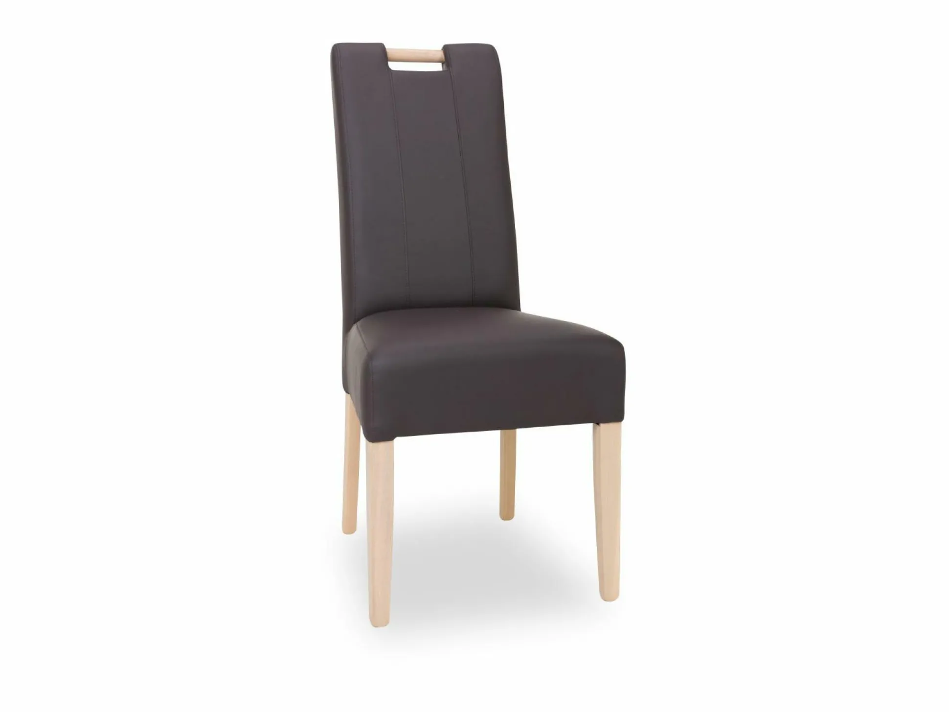 Schaffen Sie mit dem Polsterstuhl Jasmin eine bequeme Sitzgelegenheit in Ihrem Esszimmer! Der Stuhl verfügt über den Bezug PU Kaimann in der Farbe Braun und wird von einem Gestell aus Eiche bianco gestützt. Durch den Holzgriff im Rückenbereich lässt sich der Stuhl leicht bewegen. Die maximale Belastbarkeit beträgt ca. 120 kg, die Sitzhöhe ca. 50 cm und die Sitztiefe ca. 42 cm.