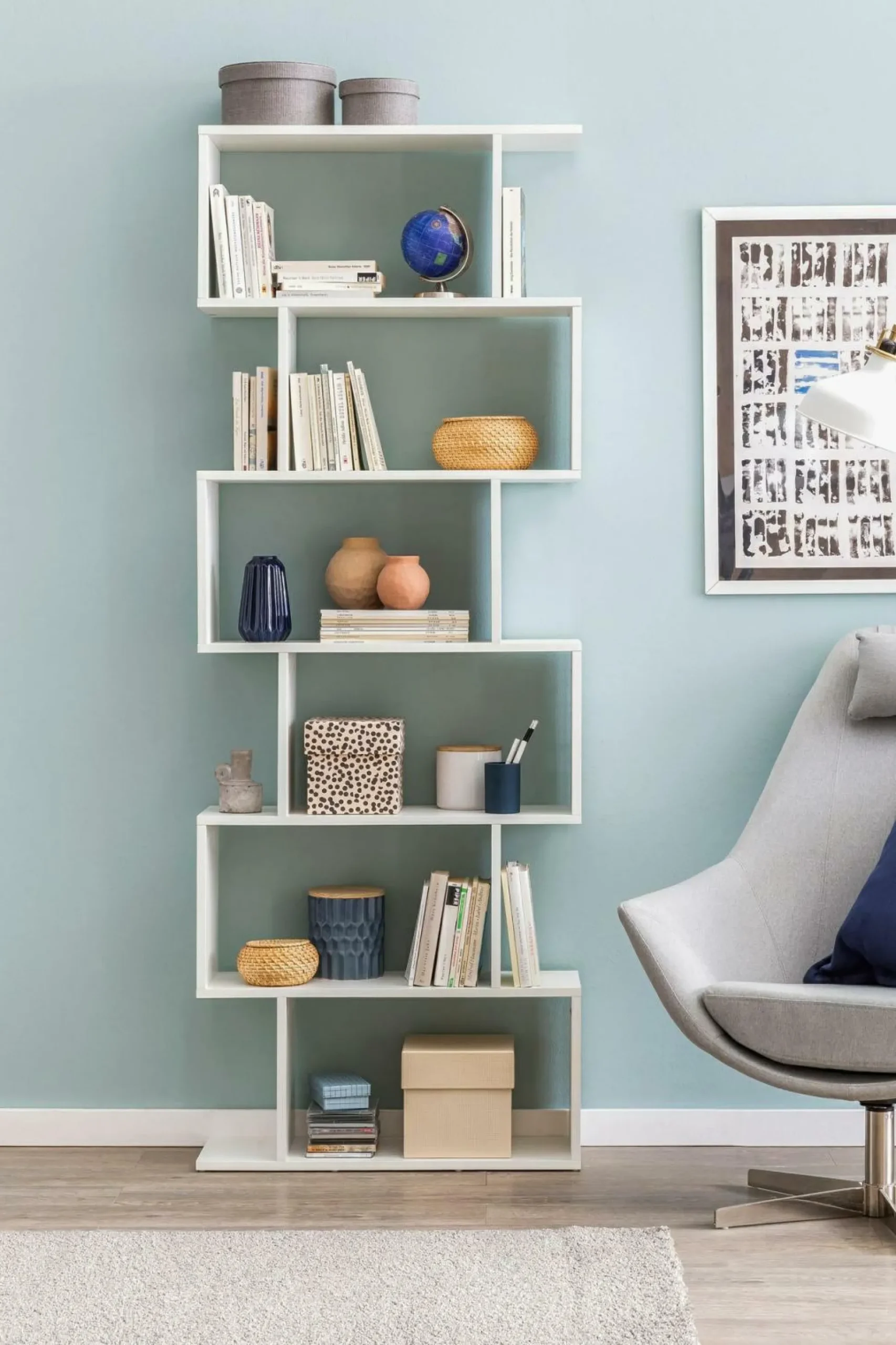 · Lieferumfang – Ein kleines, weißes Regal ohne Dekoration