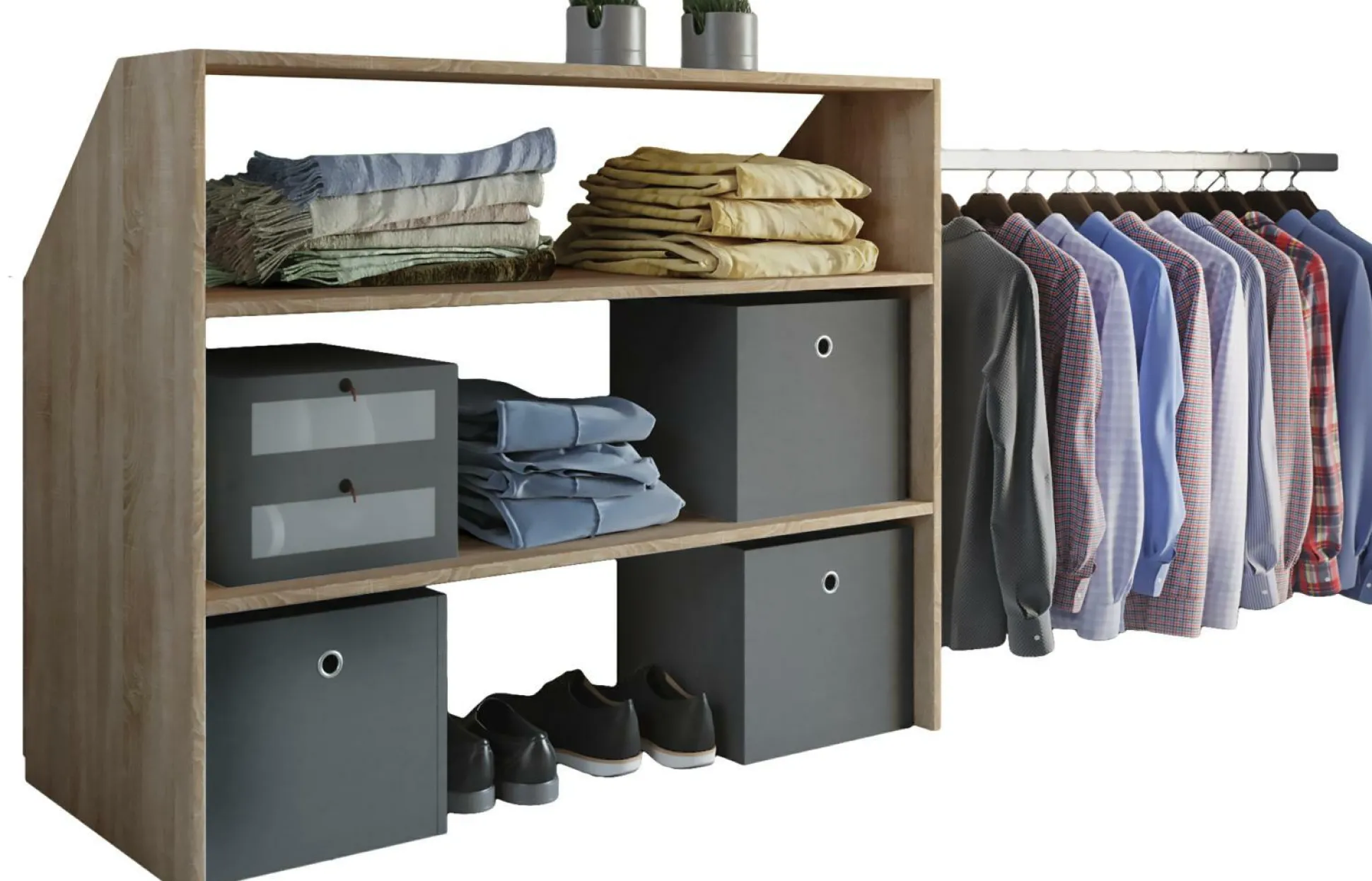 · Drei offene Fächer sorgen für ausreichend Stauraum