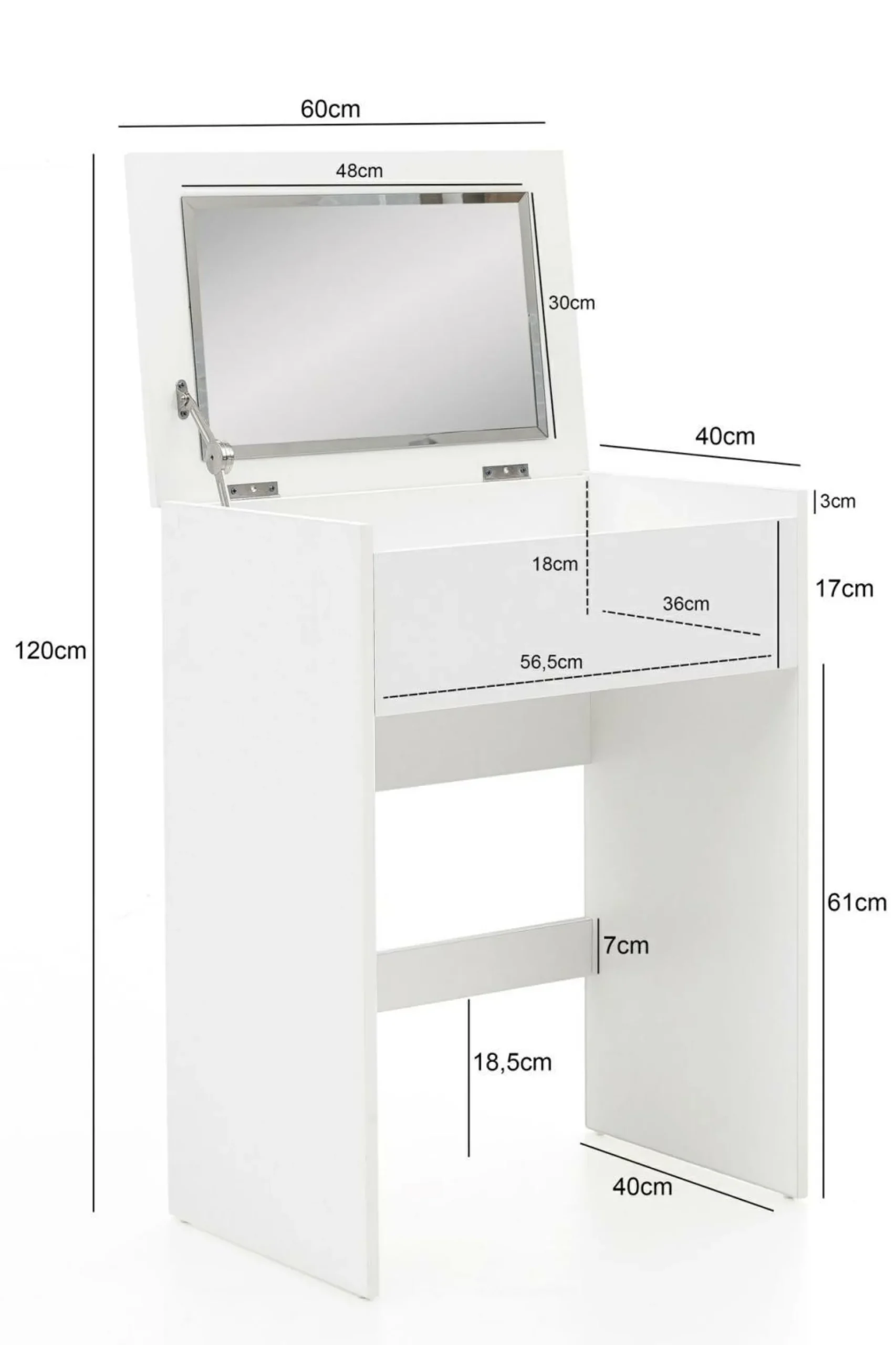 · Abmessungen – Spiegel (BxH): 48 x 30 cm, Maße des Sitzhockers (BxHxT): 40x42x29 cm.