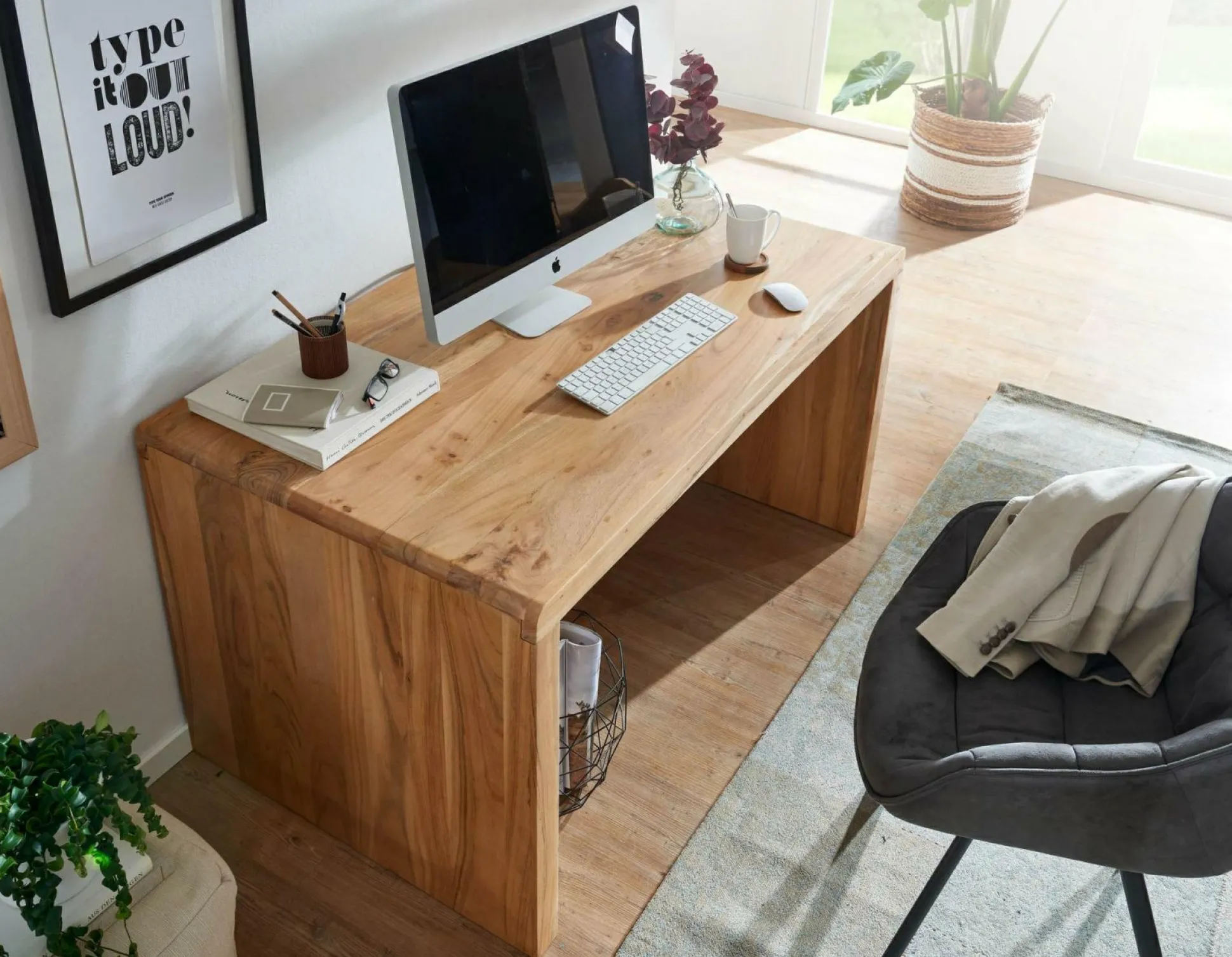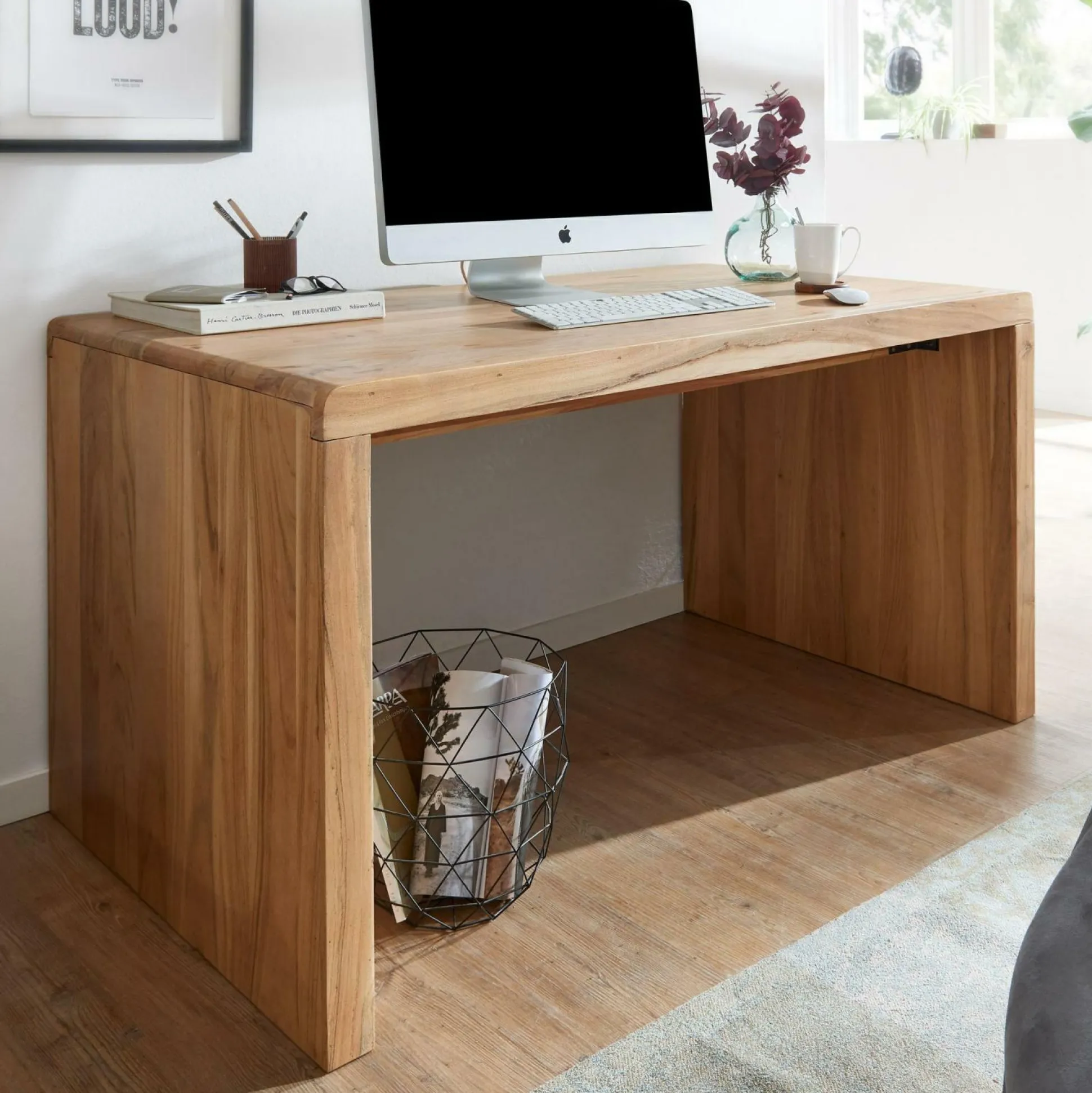 · Geliefert wird ein Schreibtisch ohne Rollcontainer und Dekoration. Montagematerial und -anleitung liegen dem Paket bei.