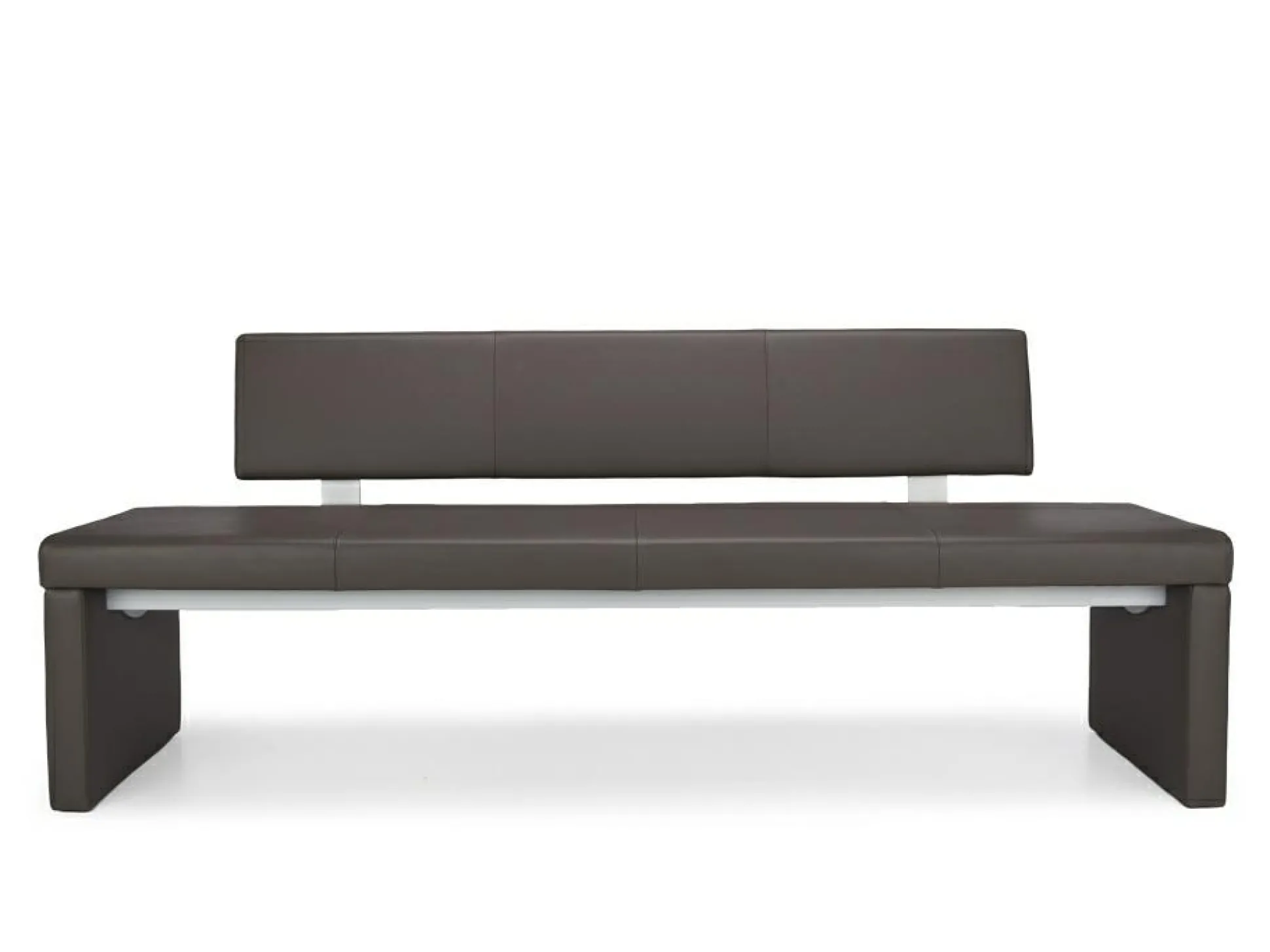 Die 3-sitzige Bank von ROLF BENZ präsentiert sich in einem schönen graubraun aus Echtleder. Die F0üße kommen in einer matt verchromten Ausführung und runden das schlichte Design ab. Die Bank kommt ohne Rücken.
