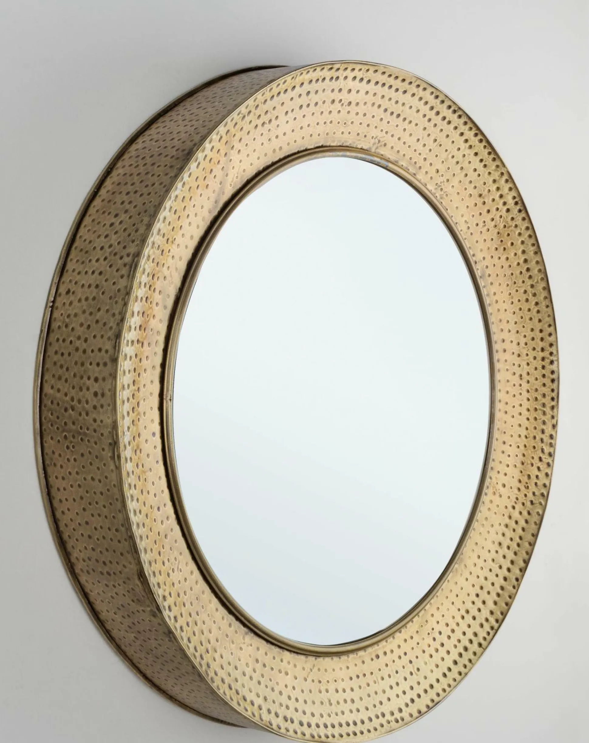 · Spiegel mit Rahmen aus Stahl und Oberflächenbearbeitung goldfarben.
