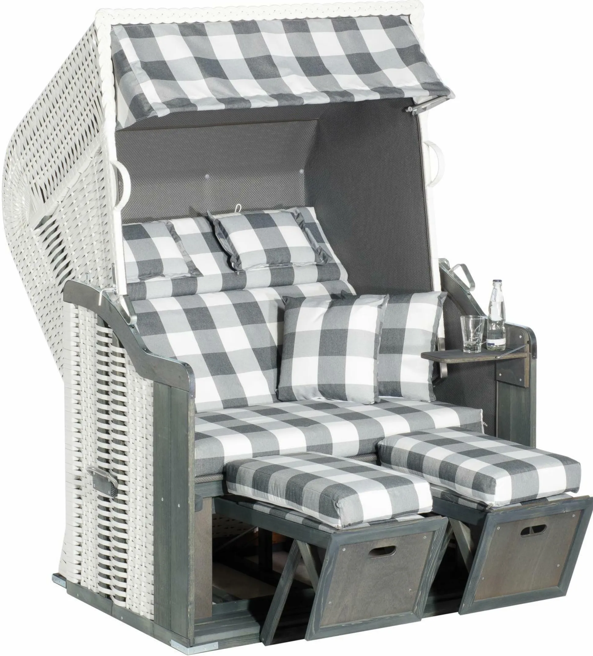 · Herausnehmbare Kissengarnitur, inkl. 2 Kuschelkissen, 2 höhenverstellbaren Nackenkissen, 2 Fußkissen und Klapptisch