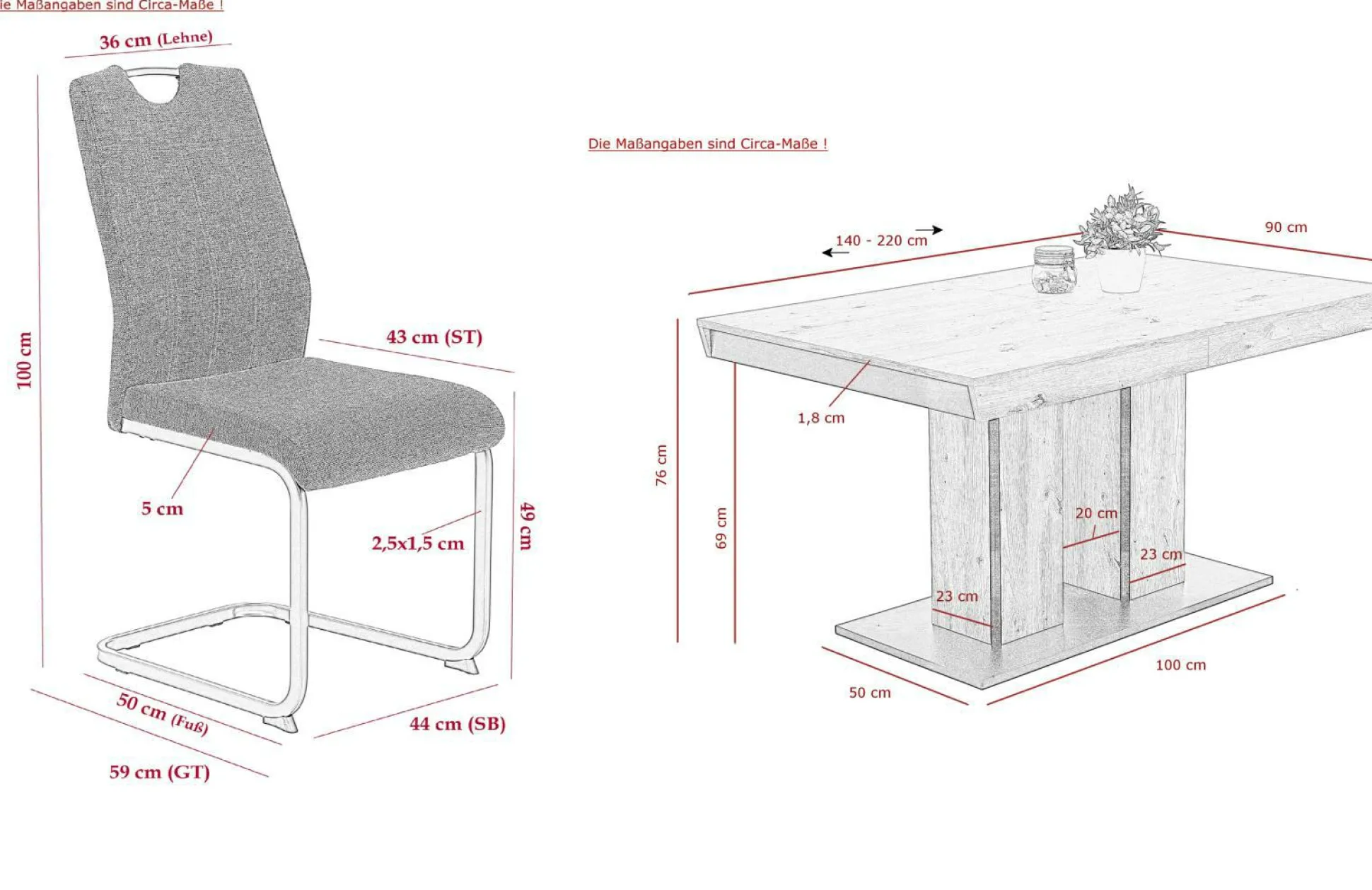 · Ausziehbar auf ca. 220cm