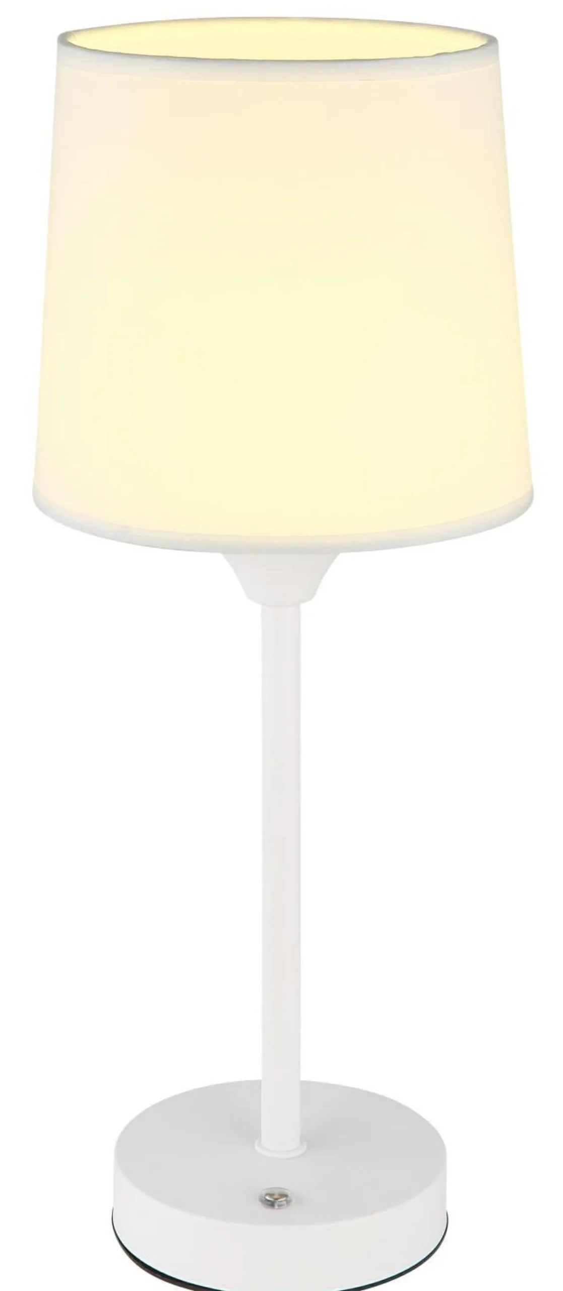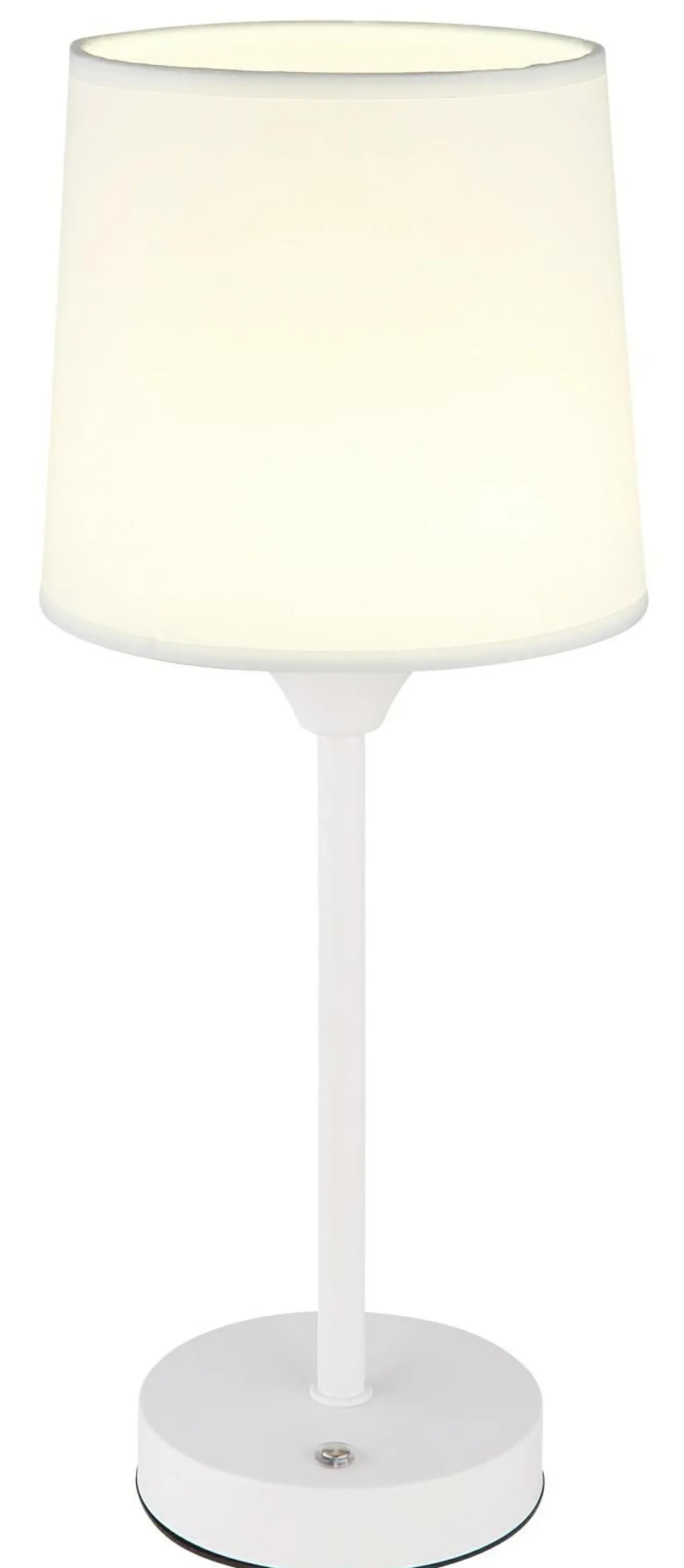 · Entdecken Sie die zeitlose Eleganz unserer Tischleuchte. Mit ihrem matten weißen Metall und dem weißen Textilschirm fügt sie sich nahtlos in jedes Wohnambiente ein. Die praktische Touch-Ein/Aus-Funktion und der stufenlose Touchdimmer ermöglichen eine individuelle Anpassung der Helligkeit. Fixieren Sie Ihre gewünschte Farbe oder wechseln Sie zwischen den einstellbaren Farbtemperaturen (2700K, 6500K, 4000K) für die perfekte Atmosphäre. Die Tischleuchte verfügt über eine Memoryfunktion, um Ihre bevorzugten Einstellungen zu speichern. Der leistungsstarke Akku (CR18650 1800mAh 3.7V) bietet eine lange Betriebsdauer und kann in nur ca. 4 Stunden aufgeladen werden. Ein USB-Ladekabel ist im Lieferumfang enthalten. Mit einem Durchmesser von 140 mm und einer Höhe von 350 mm ist sie ideal für Ihren Tisch.
