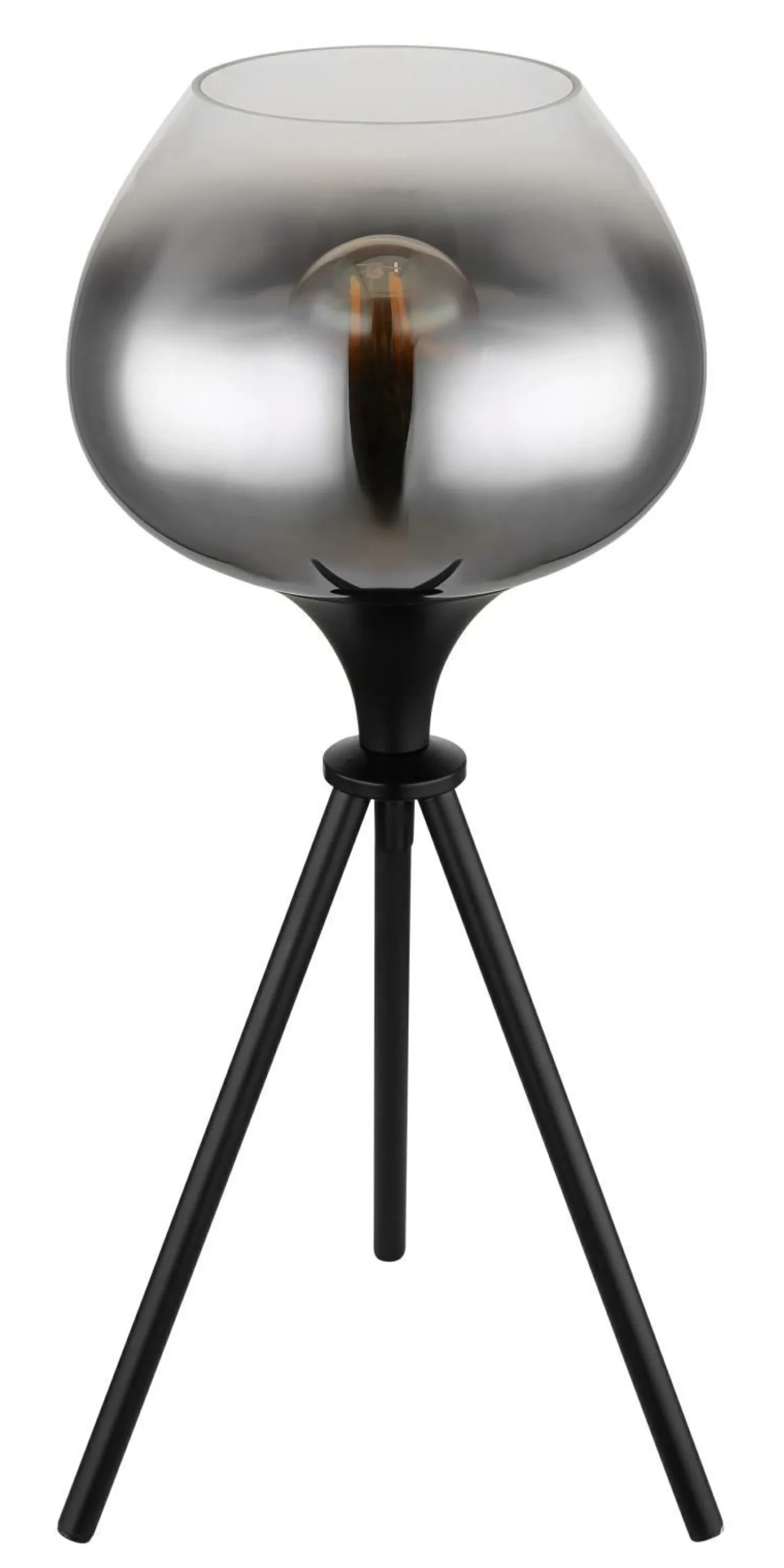 · Diese moderne Tischleuchte begeistert durch ein tolles Design. Aus einem 45 cm langen Dreibein ragt eine E27 Fassung an dieser sich ein formschöner rauchfarbener Glasschirm (Ø 18 cm) befindet. Die E27 Fassung ermöglicht Ihnen bis zu einer maximalen Leistung von 40 Watt, selbst über Lichtfarbe und Helligkeit zu bestimmen. Aufgrund von Langlebigkeit und Stromersparnis empfehlen wir LED Leuchtmittel.