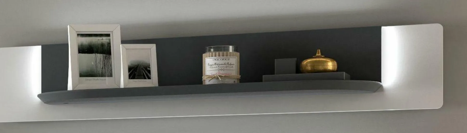 Das Wandboard Esano aus dem Hause DSIGN ist die ideale Möglichkeit Ihre liebste Deko gekonnt in Szene zu setzen. Das moderne Design integriert sich dabei wunderbar in nahezu jedes Wohnkonzept. Die Rückwand ist in einem Lack weiß gehalten und wird von einem Boden und einer Blende aus mattem anthrazitfarbigem Lack ergänzt. Die LED- Beleuchtung macht aus dem Board ein echtes Highlight.