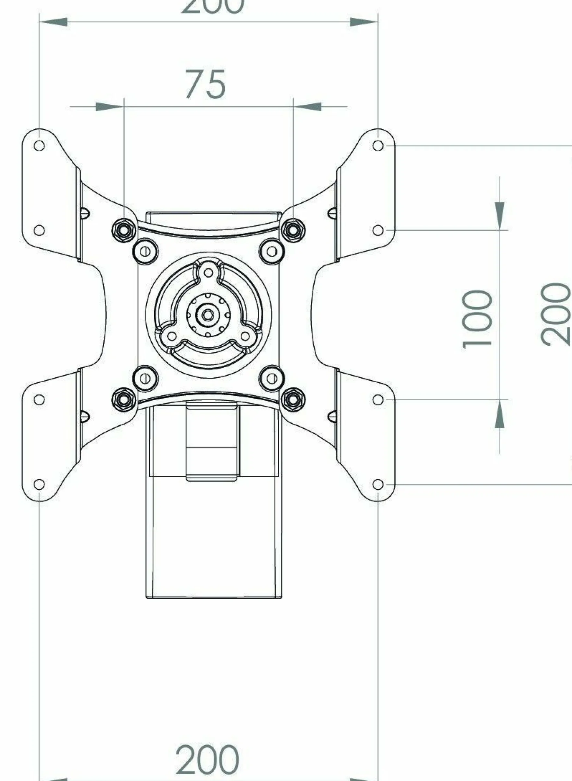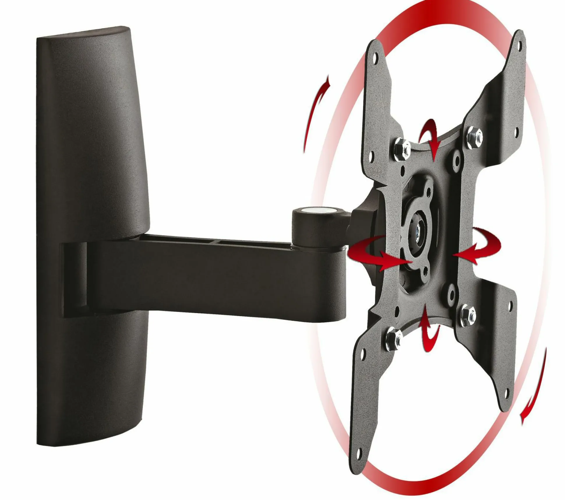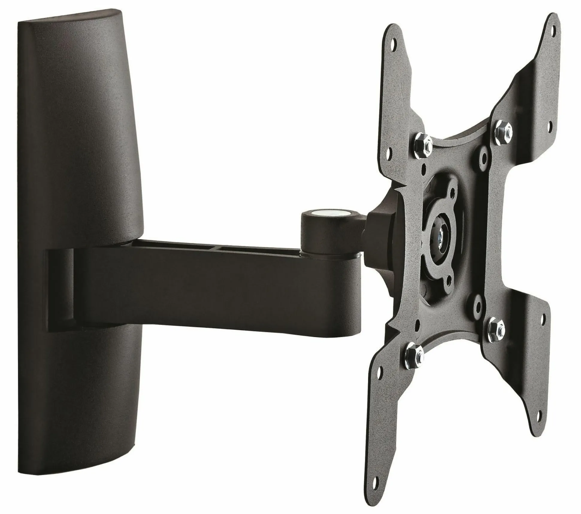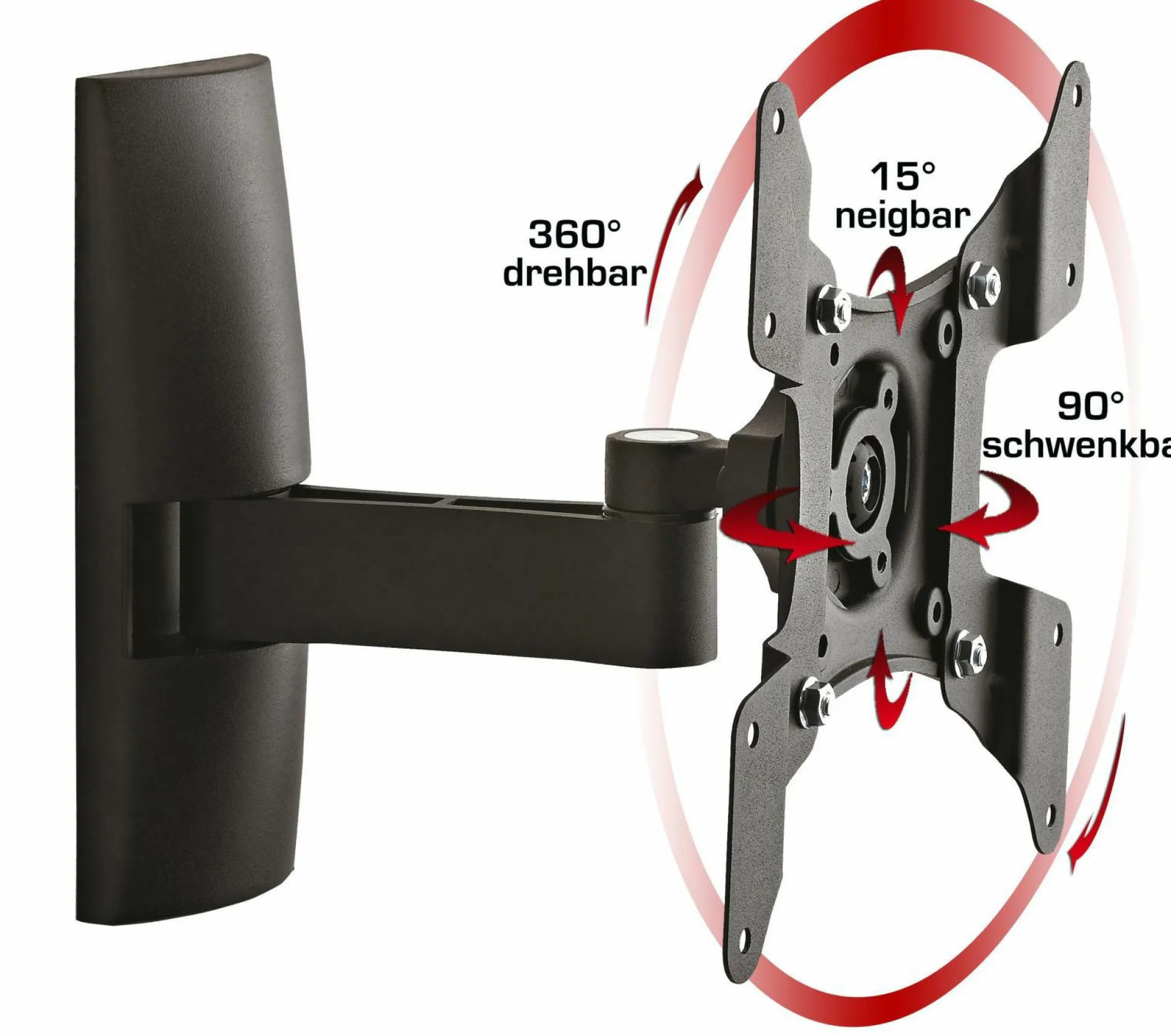 · VCM universelle Wandhalterung TS 2 Schwarz aus hochwertigem Aluminium. Für alle handelsüblichen Flachbildschirme von 15-37 Zoll (38-94 cm) bis max. 15 kg. Die Halterung hat 2 Gelenke. Wandabstand min. 10,0 cm max. 23,0 cm. Die Halterung ist 15 Grad nach oben und unten neigbar, hat einen Schwenkradius von bis zu 90 Grad seitlich und ist um 360° drehbar und somit auch im Portaitformat verwendbar. VESA-kompatibel mit 75×75,100×100, 100×200, 200×100 und 200×200 mm. Die Lieferung erfolgt teilmontiert inklusive aller Befestigungsmaterialien und Montagematerial. Produktmaße: Länge/Breite 22,0 x Tiefe 23,0 cm.