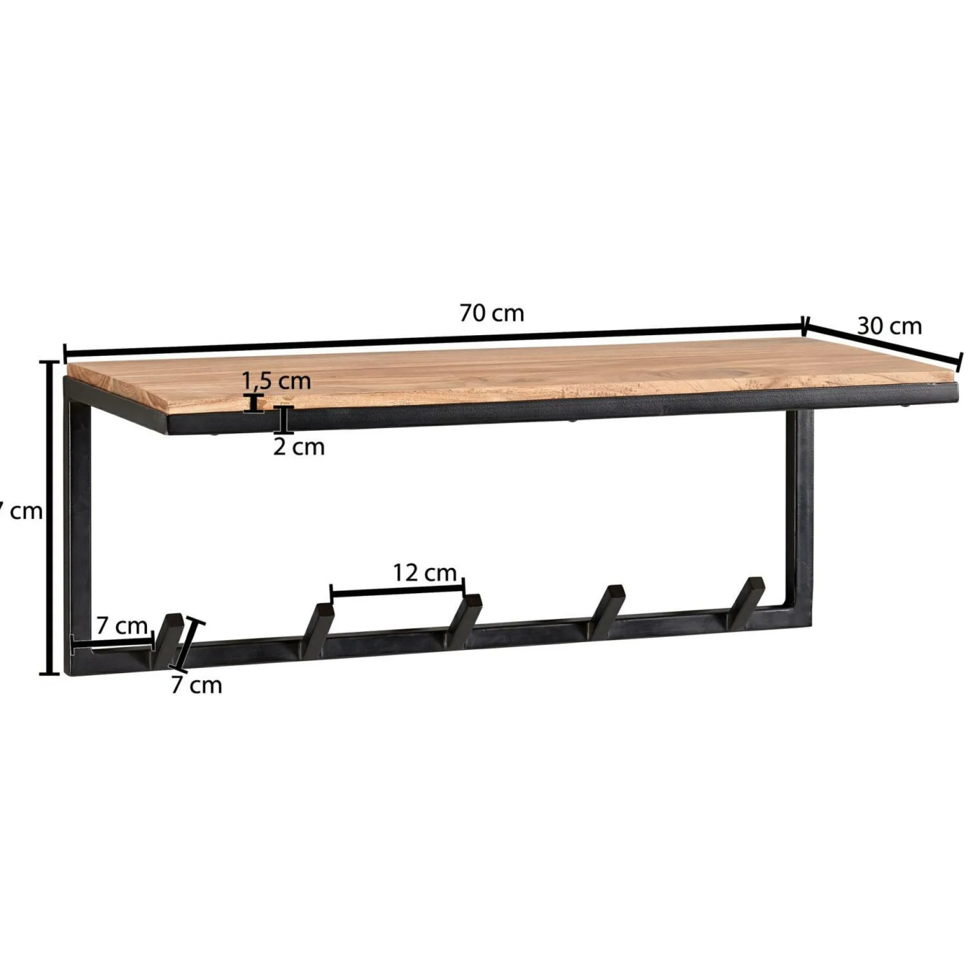 · Abmessungen – Materialstärke Holz: 1,5 cm, Materialstärke Metall: 2 cm.