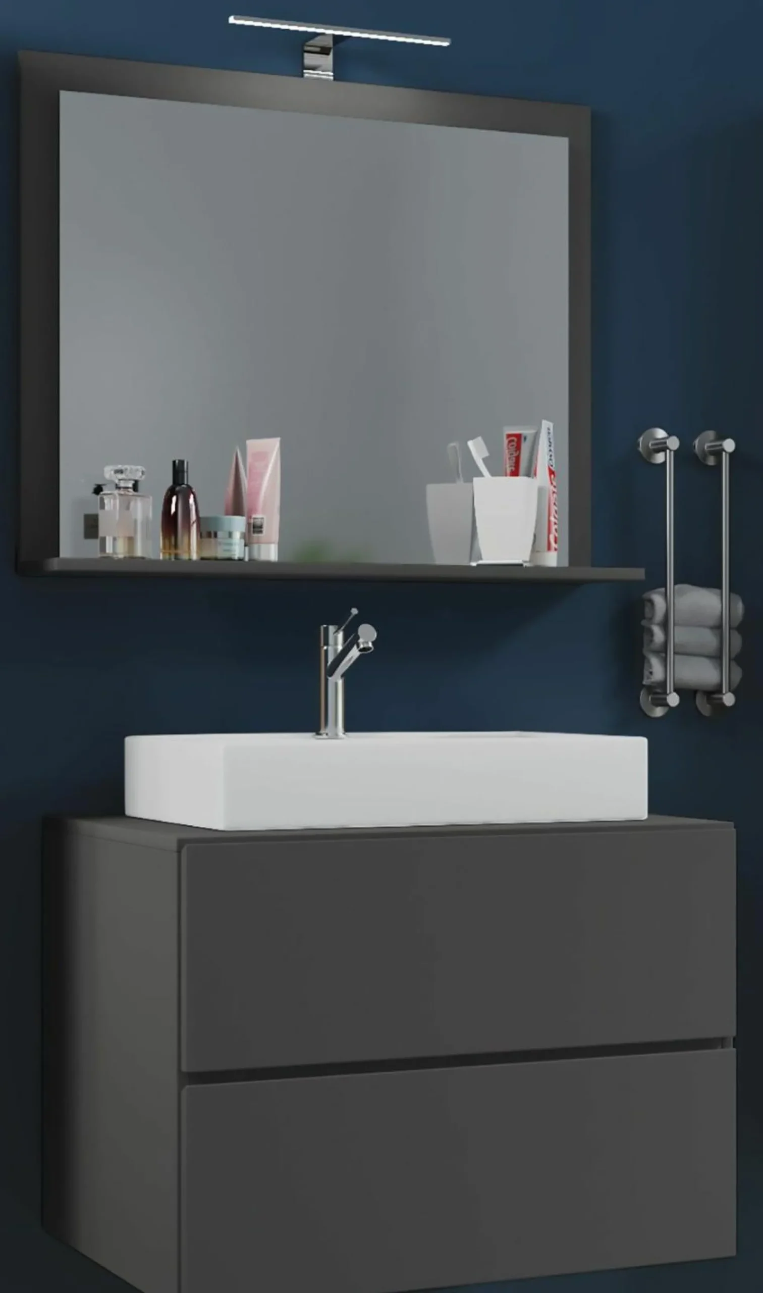 · Das Badmöbel-Set besteht aus einem Unterschrank mit zwei Schubladen auf robusten Metallschienen. Das Möbel ist mit einer praktischen Push-to-Open-Funktion ausgestattet.
